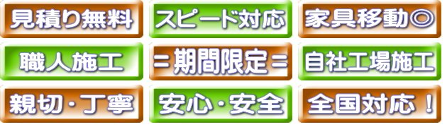 料金は、材料代、施工費、配送費、出張料などを含んだ価格です。