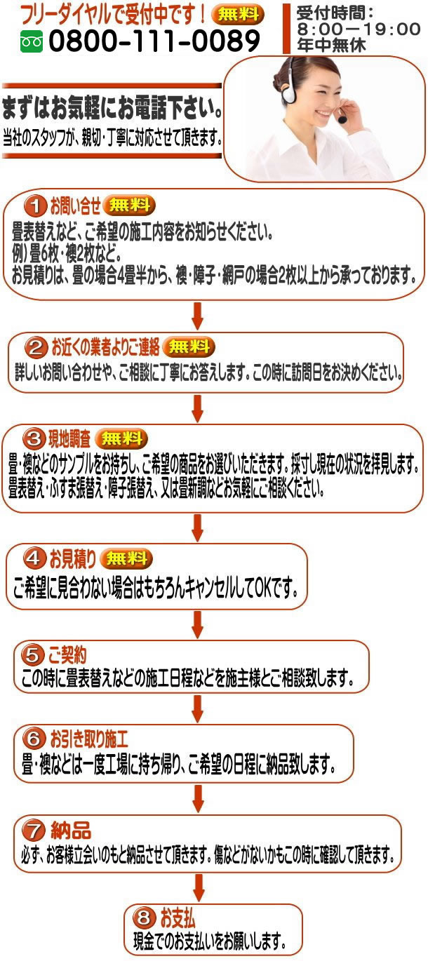 ※ 畳は一部屋4畳半から、襖・障子・網戸の場合2枚からお受け致しします。